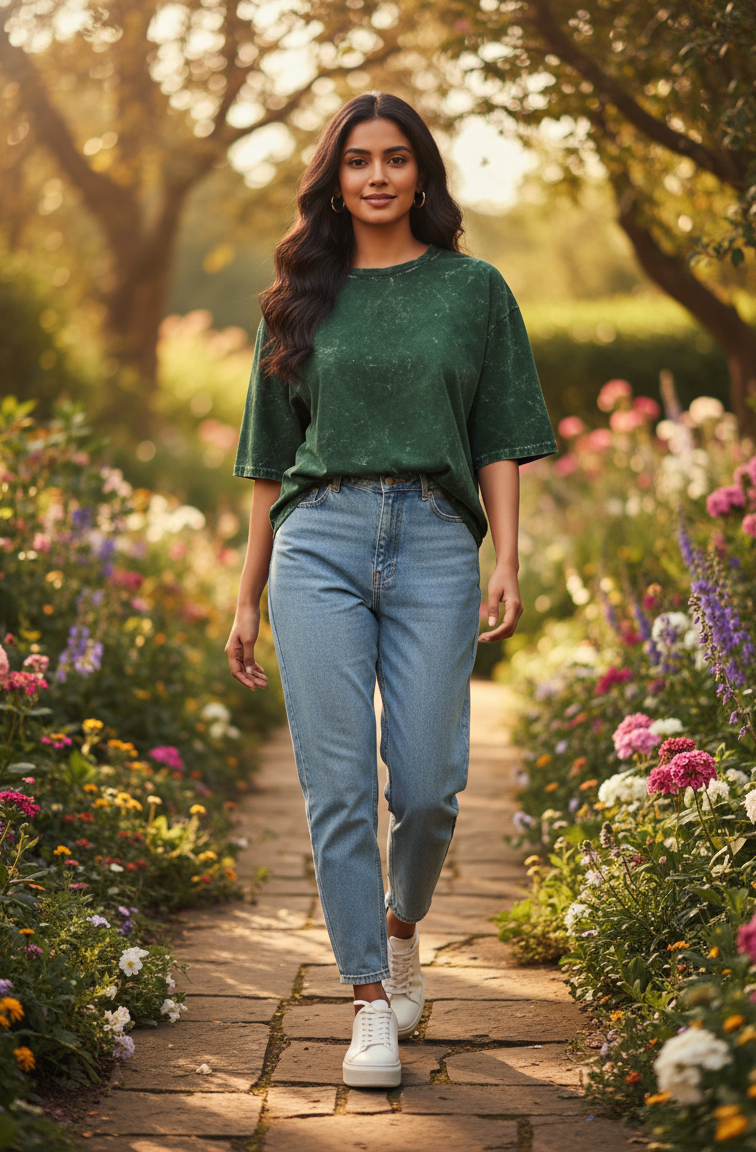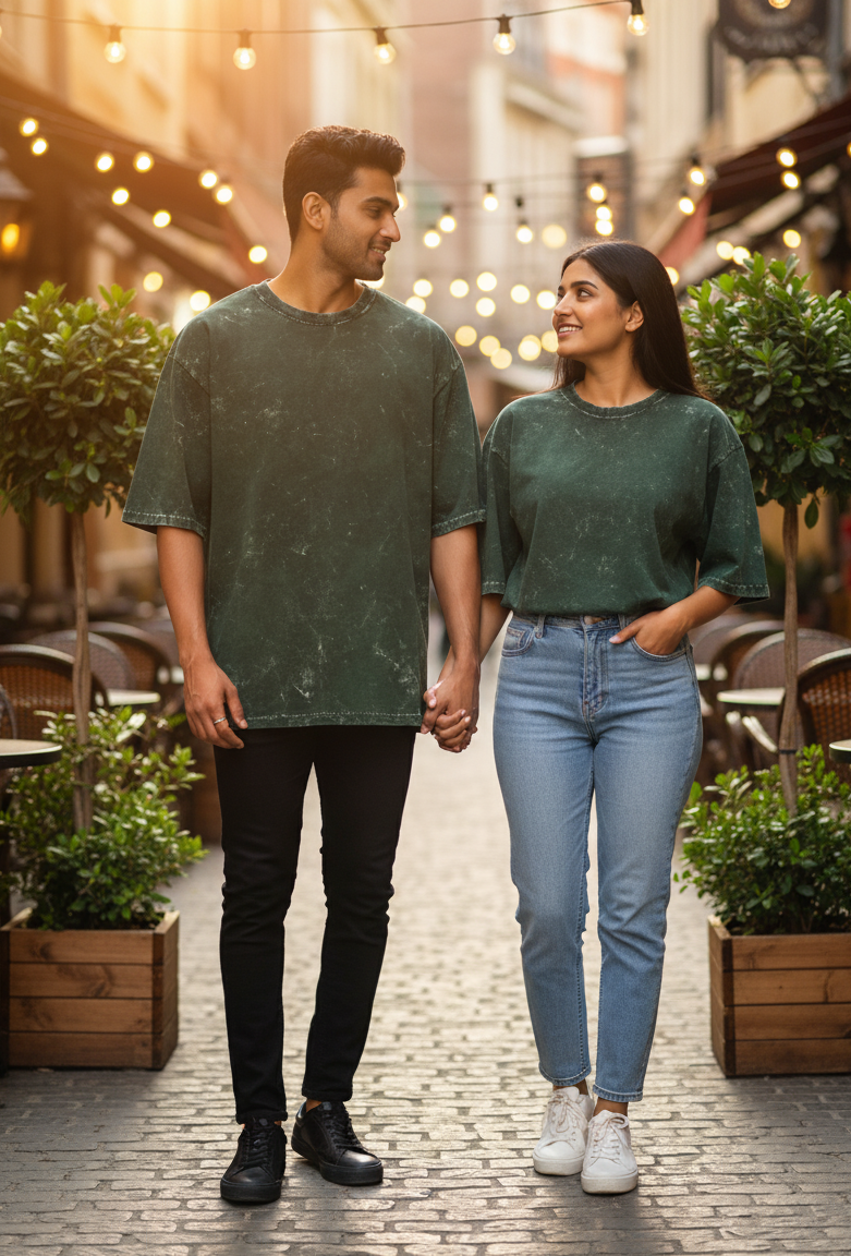 This bottle green acid-washed oversized tee blends heavyweight comfort with a unique vintage aesthetic — perfect for those who want to stand out effortlessly.