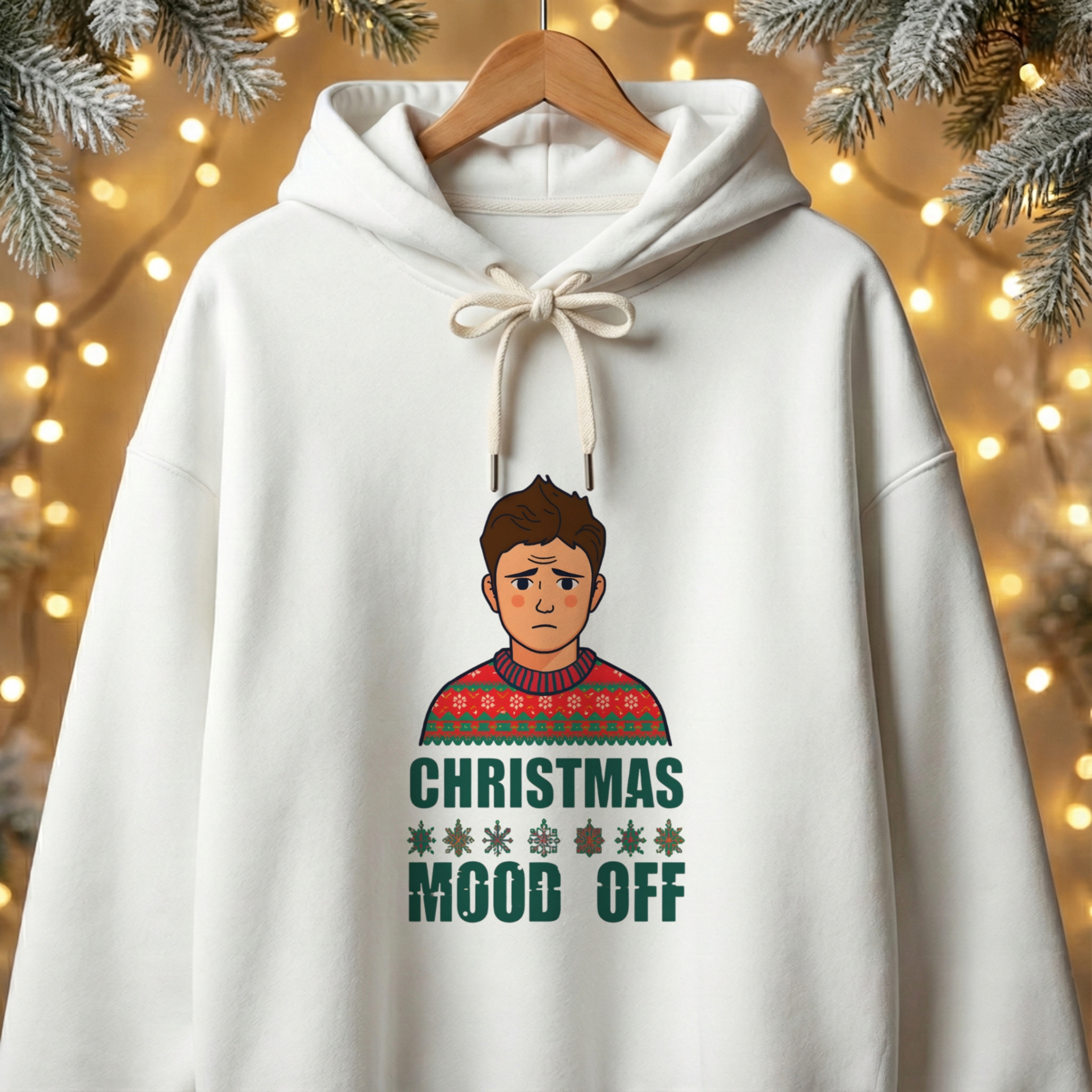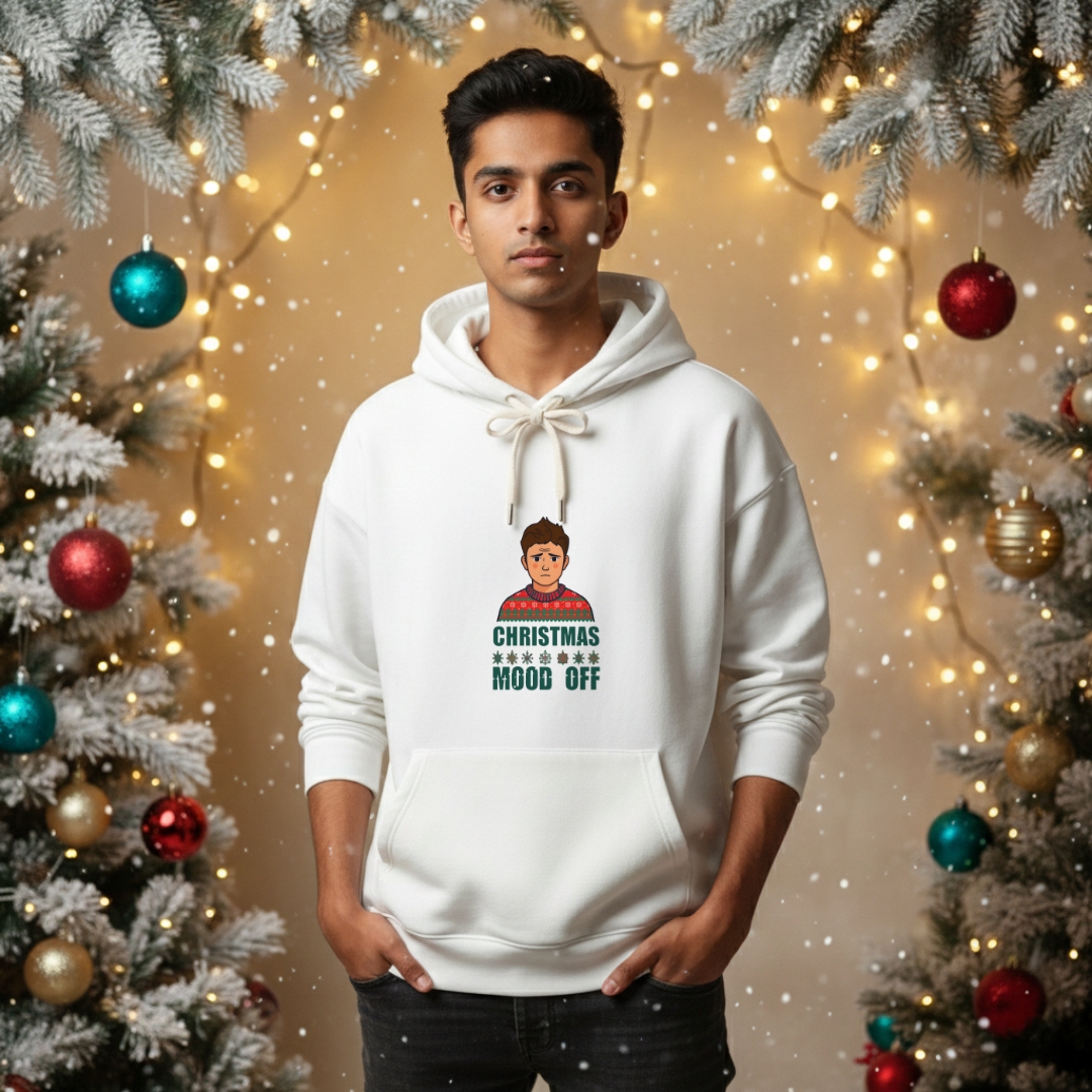 “Christmas Mood Off” perfectly nails those moments when the holiday hype fades into quiet exhaustion—too many parties, endless shopping, or just needing a break from the cheer. It’s for anyone feeling that subtle holiday burnout, turning it into a bold, honest statement that’s equal parts funny and real.