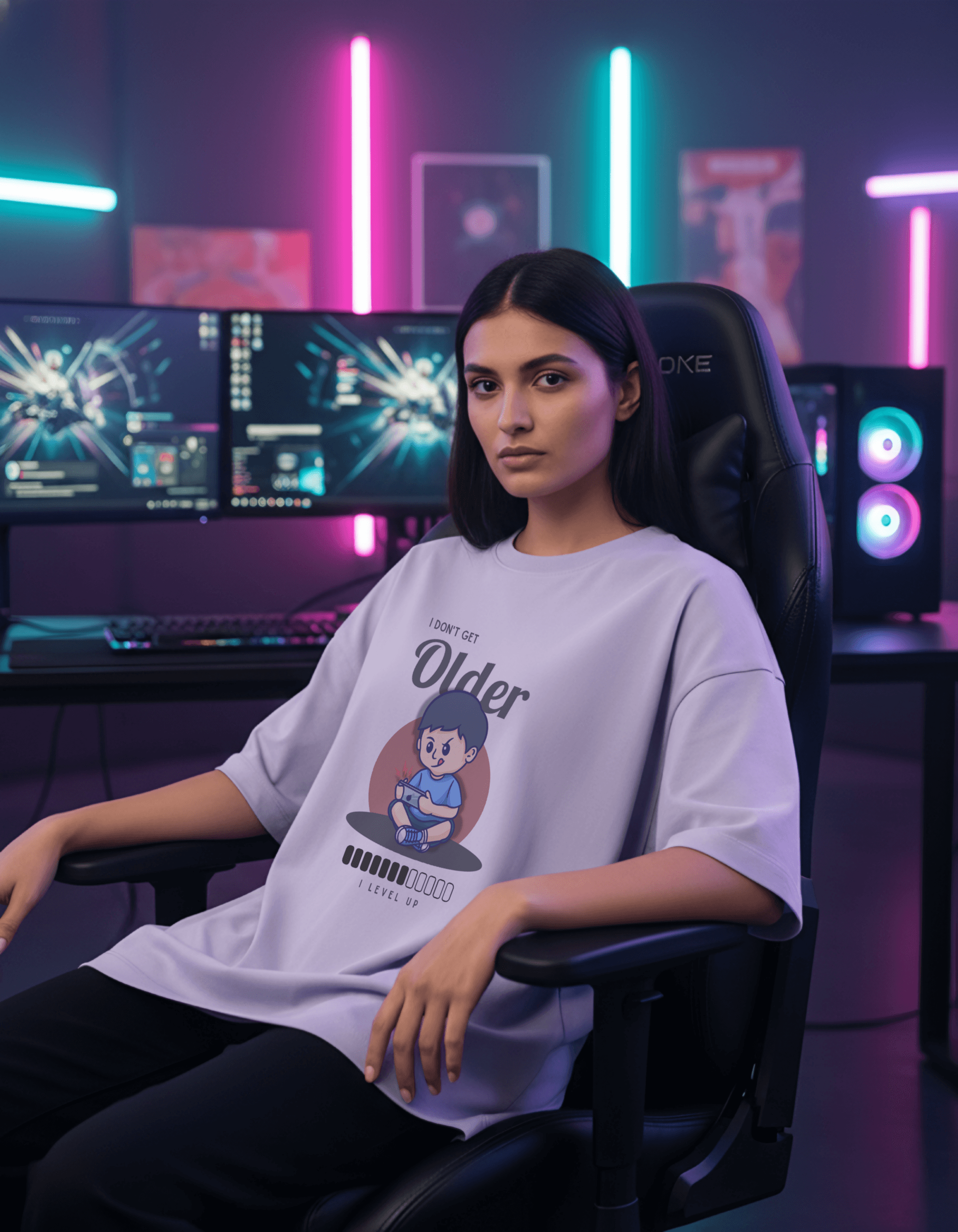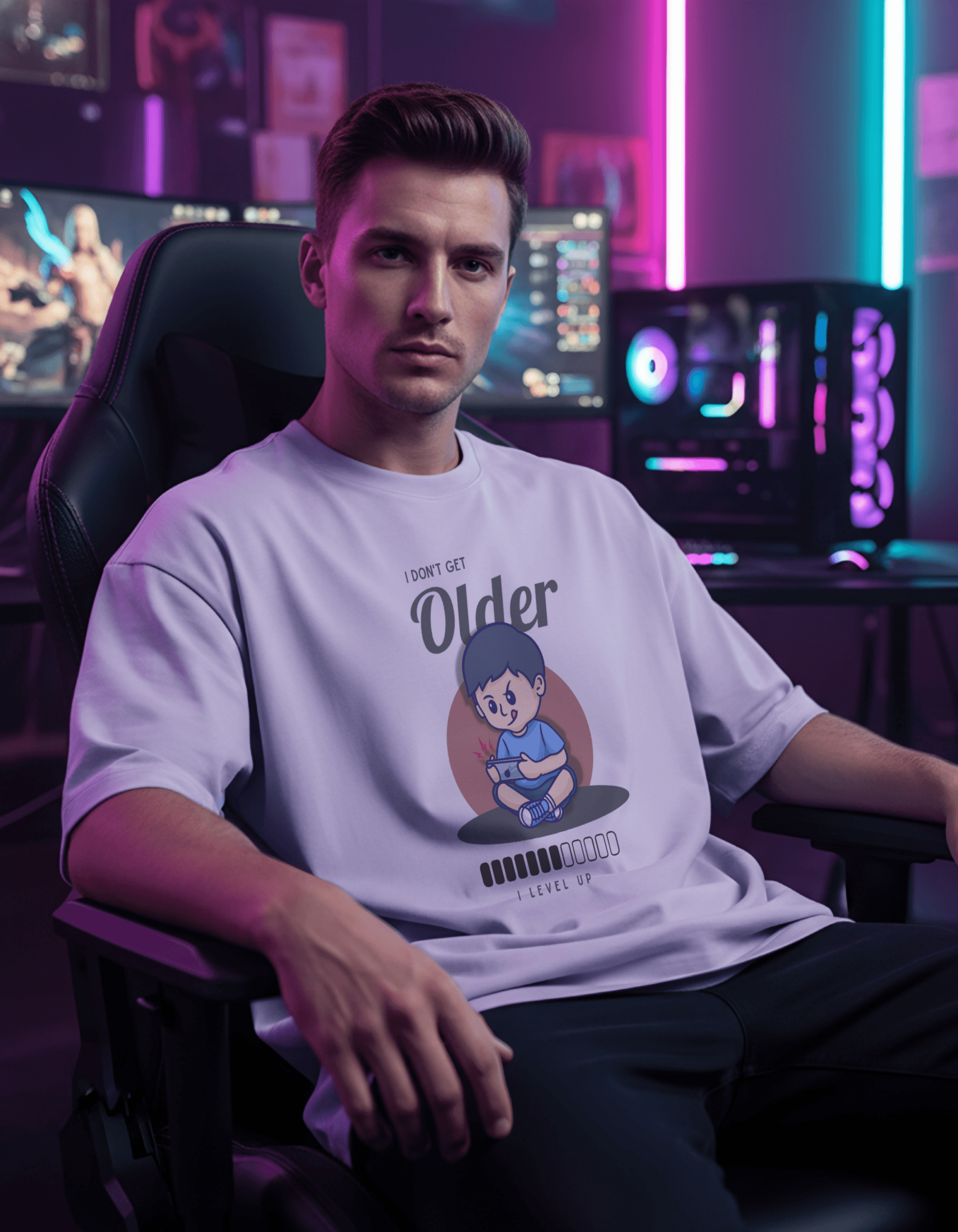 The I Don’t Get Older, I Level Up Oversized T-Shirt is made for those who see every year as an upgrade. Inspired by a growth mindset and gamer-style confidence, this tee turns age into an achievement and attitude into fashion.