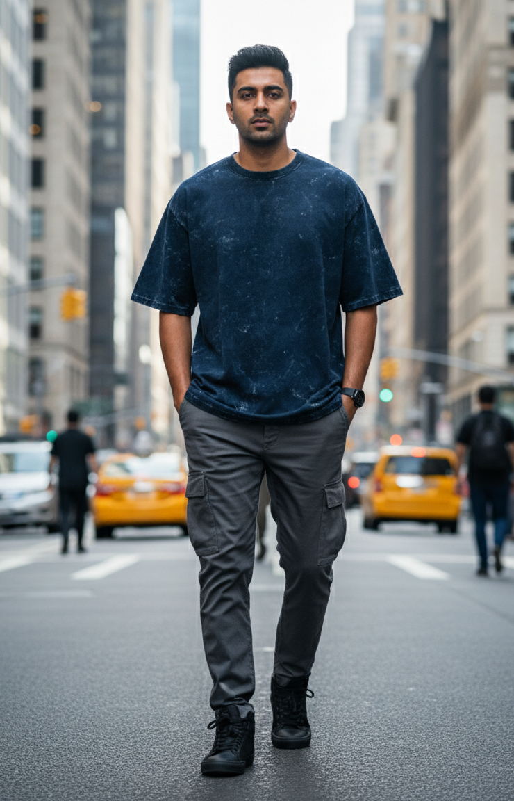 A perfect fusion of premium comfort, durability, and vintage charm—this navy acid wash tee is a must-have for every streetwear wardrobe.