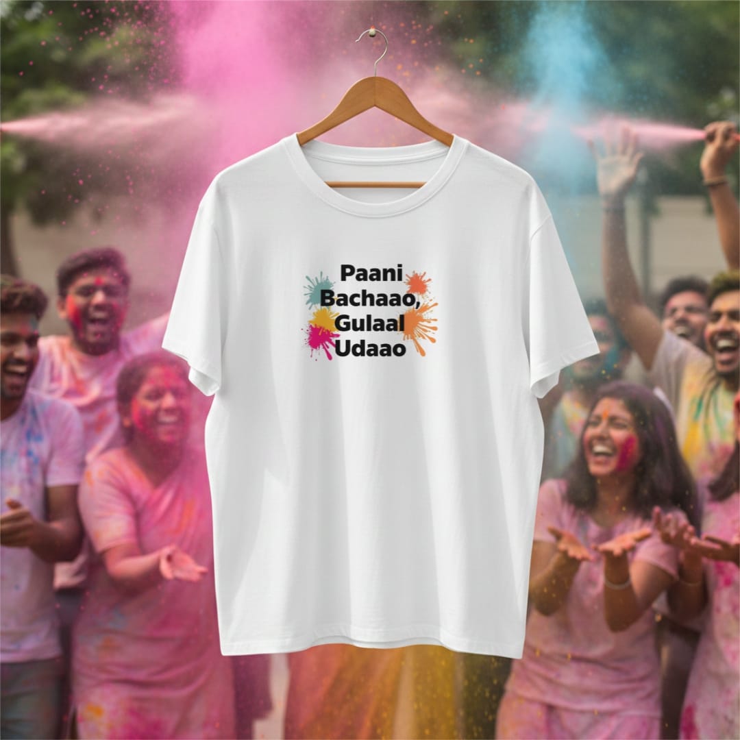 Celebrate Holi with style, awareness, and comfort in our “PANI BACHAOO GULAL UDAO” Oversized T-Shirt – the perfect blend of festive vibes and eco-conscious fashion.
