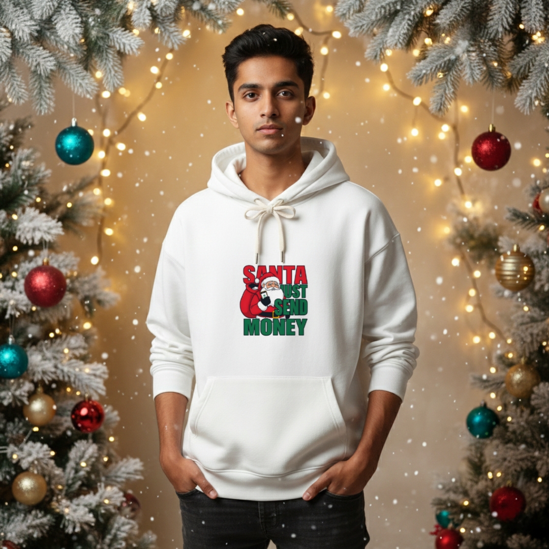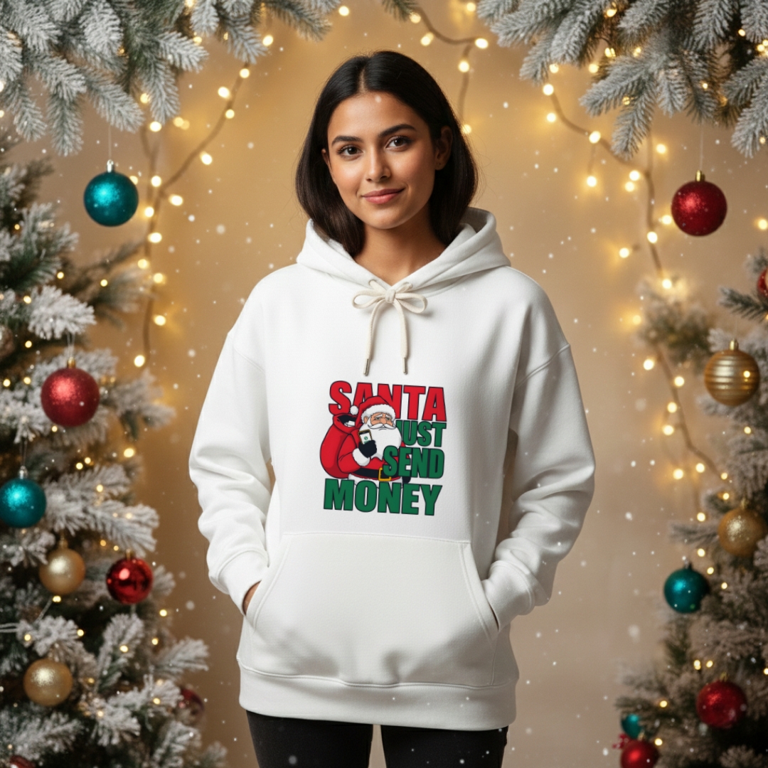 “Santa Just Send Money” cuts through holiday pretense with brutal honesty—skip the socks and fruitcake, just drop the cash. It’s the perfect mantra for anyone tired of generic gifts, speaking to that universal wish for practical holiday wins over clutter.