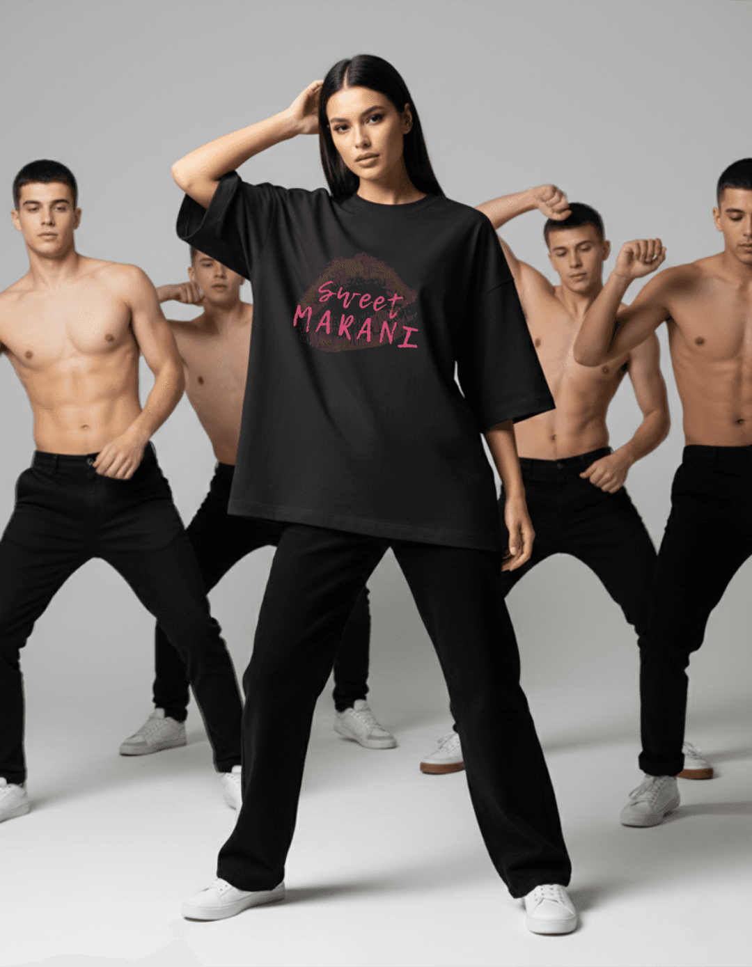 The Sweet Marani Oversized T-Shirt blends playful attitude with everyday comfort. Designed for those who love soft aesthetics with a confident streetwear vibe, this tee adds a sweet yet bold expression to your wardrobe.